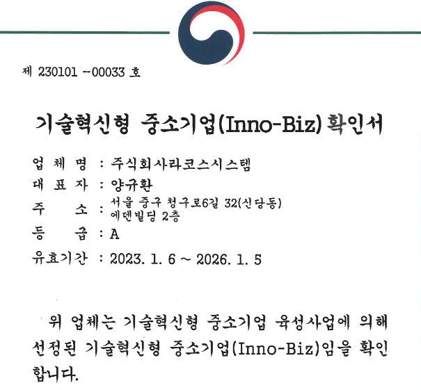 서울특별시 중구 청구로 6길 32 에덴빌딩 4층 주식회사 라코스시스템